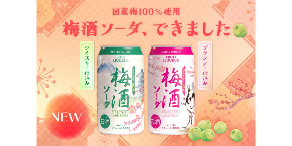 松井酒造 ブランデーとウイスキー仕込みの「梅酒ソーダ」2種を新発売