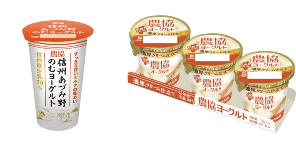 今回登場するのは、信州産の生乳を70%使用した『農協 信州あづみ野のむヨーグルト』と、濃厚でクリーミーな『農協ヨーグルト濃厚クリーム仕立て70g×3個』。