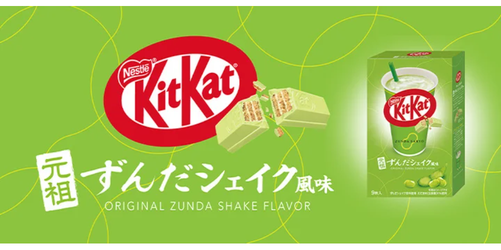株式会社菓匠三全は、ネスレ日本の「キットカット」と、同社が展開するずんだスイーツ専門店「ずんだ茶寮」の代表スイーツ「ずんだシェイク」がコラボレーションした「キットカット 元祖ずんだシェイク風味」を、2025年10月1日(水)より期間限定で販売開始します。