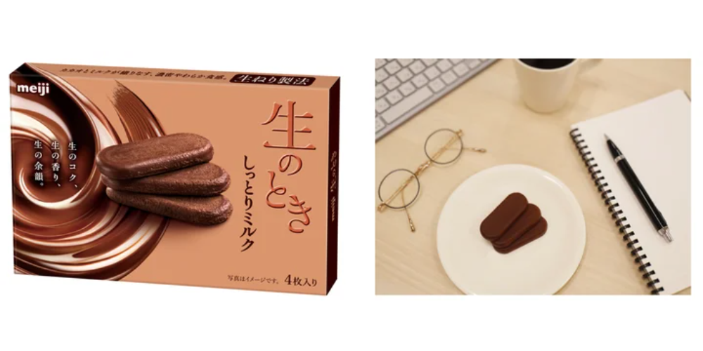 「生のときしっとりミルク」は、商品化まで8年の歳月をかけ、明治独自の特許技術「生ねり製法」で開発された新領域の菓子です。従来のチョコレートにはない「これまでにない水分領域」を実現し、しっとりとやわらかで濃密な食感が特長で、「生チョコに似ていておいしい」「カカオのコクがある」など、SNSなどで好評を博しました。