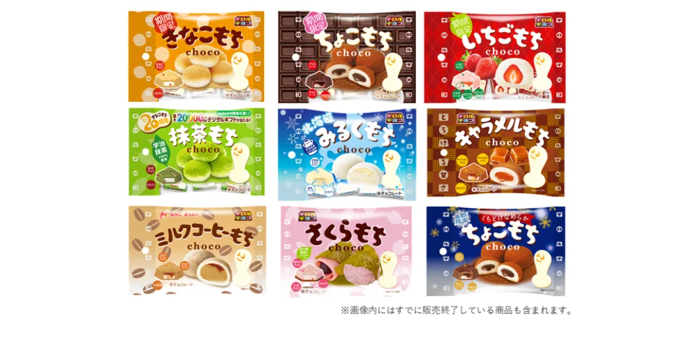 チロルチョコの「もちシリーズ」は、もちもち食感とチョコレートの組み合わせが楽しめる人気シリーズとして、毎年9月から3月までの期間限定で展開されており、代表的な「きなこもち」をはじめ、様々なフレーバーが登場しています。
