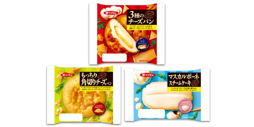また、新商品の「もっちり角切りチーズパン」は、もっちりとしたパン生地に角切りチーズなどをトッピングし、食感にこだわった食べ応えのある商品です。「マスカルポーネスチームケーキ」は、北海道産マスカルポーネチーズを練り込んだ蒸しケーキにホイップをサンドし、やさしい乳の風味とミルキーな味わいが特徴です。